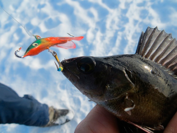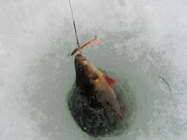 Попиваю, размышляю, места разные попробовал, игру разную исхитрялся творить, может балансира форму изменить. Выбираюсь на улу. Запускаю балансир в ближайшую лунку. Вдруг легкий задев. Не понял. Подброс. Замирание тычок. Окушок что ли проснулся?