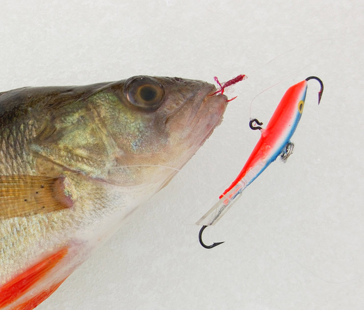 Подсеченный судак - а это несомненно был он - тяжело заходил кругами у самого дна. Борьба была недолгой. Леска была выбрана довольно прочная. И смысл в таком выборе был не только в форсировании вываживания, но и в гарантии надежной подсечки. Ведь с более тонкой и деликатной леской, например 0,18 мм, просечь жесткую костистую судачью пасть попросту невозможно. Сходы замучают. В общем, судак всего пару раз ткнулся головой в ветви подводных коряг (хорошая деталь, в коряжнике рыбы больше и держится она там постоянно), и был благополучно извлечен на лед.