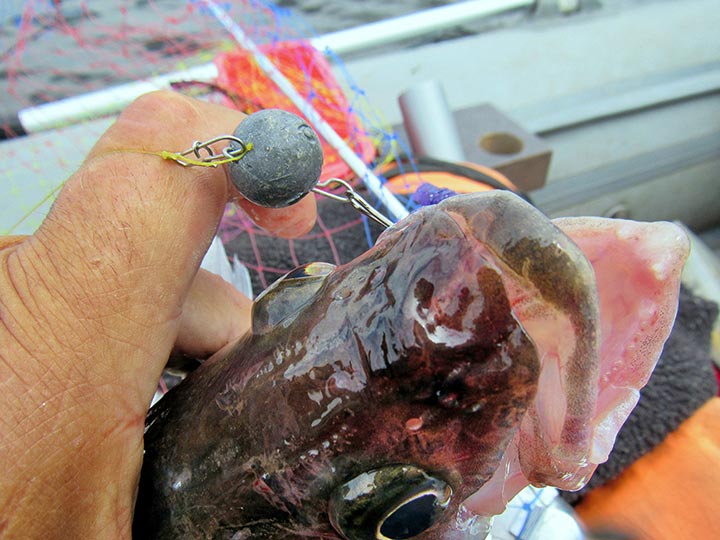 В какой-то момент мы сменили диспозицию и попробовали ловить, проводя приманки с «мели» (метров этак с 8) на глубину (12 метров). Понадобились большие веса, поскольку довольно быстро приманка «зависала». После нескольких забросов «чебурашки» массой 38 граммов мне показалось, что я слишком перегружаю спиннинг. Но следующая рыбалка развеяла мои страхи.