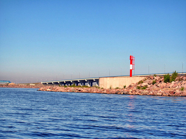 Данное гидротехническое сооружение, призванное защищать город от наводнений, протянулось с северного на южный берег залива. Дамба делится на северную и южную ветки, между ними находится город Кронштадт, расположенный на острове Котлин. Северная ветка дамбы включает в себя четыре пропускника (створа), из которых интерес для рыболовов представляют три, находящиеся ближе к Кронштадту. |