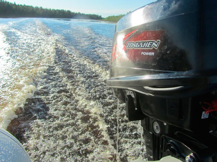 Мотор режет надвое тихие просторы, оставляя за бортом буруны пробудившейся воды.