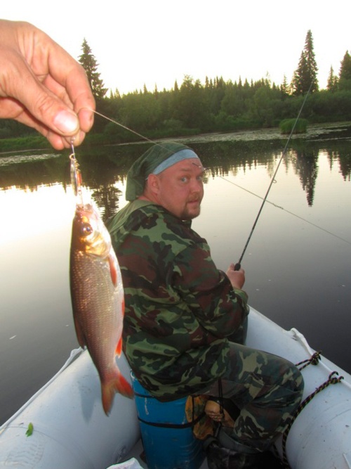 Кто спиннингом балуется. Лодьма - одна из немногих рек Севера, где разрешен лов на спиннинг, в остальных местах лишь на поплавочную уду, чтоб не повредить малька семги. Хотя он и на червя неплохо соблазняется. С другой стороны умелый рыбак спином сколь харя наловит – основного конкурента молоди семги в северных реках. Поди – пойми науку ихтиологию, коль правила таки устанавливают. Наше дело исполнять, да рыбку лавливать :)